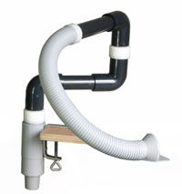 机上でのカッターやバフ掛け作業中の貴重な貴金属粉塵を回収します。 マウス(吸い口)は都合のよい位置に自在に向きが変えられ、不用なときは作業の邪魔にならないところまで軽い動作で動かせます。 プチバキュームNo.8500や家庭用の掃除機に接続してお使いください。 ※掃除機にフットスイッチを併用すると便利です。