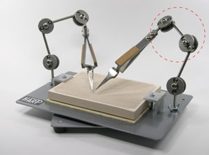 ステンレス製、高精度の多関節だから、軽く動かせて好みの位置に止められます。 回転式だから、ロウ付作業がやりやすくなりました。 自在に向きを変えることができます。 【寸法】 回転台巾220×奥行140mm、全重量1.2kg 床面からロウ付台面までの高さ35mm、台座は鉄製塗装仕上げ ※耐熱ロウ付台は、「No.H51 ハニカムブロック」を使用しています。
