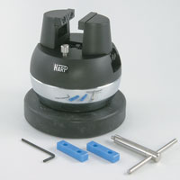 目が疲れない黒色表面処理仕上げ。 金属爪とプラスチック爪とが、取り替えられます。 バイスロ金部は滑り止めの立目ギザ入り、口金天面は作業性の良いように両側に少し傾斜させてあります。 バイスロ金の動体部は、少し高目にしていますから握りやすく、水平回転部はほどよい軽さに仕上げました。 水平回転を止めるストッパーピンも付けました。 写真下のプラスチック爪とは簡単に取替えできます。 【寸法】 直径134φ×高さ158mm/重量8.7kg(ゴム台を除く) ※ゴム台付き