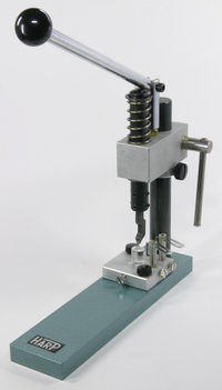 お手持ちの刻印がそのまま使えます。 本機はレバーの「てこ」の応用で刻印部に力を加えるもので、どなたにも定位置に簡単に刻印することができます。 曲り刻印、直刻印が簡単に固定できます。 ※刻印は別売です。 【標準付属品】 位置ぎめ当り受け台保持具 一式 自在に溝が入れられるプラスチック受け台 3個 【寸法】 巾65×奥行260×高さ250mm/重量4.6kg