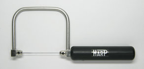 手のひらにのる超小型。細密作業に! ヘラクレスやバローベの糸のこ刃がそのまま使えます。全長130mmの糸のこ刃のほぼ半分は中空の柄内に収まり、刃の切れ味が悪くなれば順次に前方に位置をかえて使います。 全長172×柄長88、懐深さ60mm、作用部間52mm