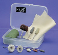 実際にプロの職人が工房で使用している優れた研磨用先端工具を厳選しました。 わかりやすい解説書付きで、銀の作品を始め、金やプラチナジュエリーの製作にも使用できます。 【セット内容】 No.H334KM イブのシリコンポリッシャー No.H334KF イブのシリコンポリッシャー No.605 イブのシリコンポリッシャー No.705 イブのシリコンポリッシャー No.57 ポリラピッドのフェルトポイント No.950 006 ポリクイックの白毛ブラシ・軟 No.960 001 ポリクイックの綿糸バフ No.133.210R ミゼットバフ、荒目 No.H83 青棒 No.832 セーム革(100×150mm) 解説書・プラスチックケース